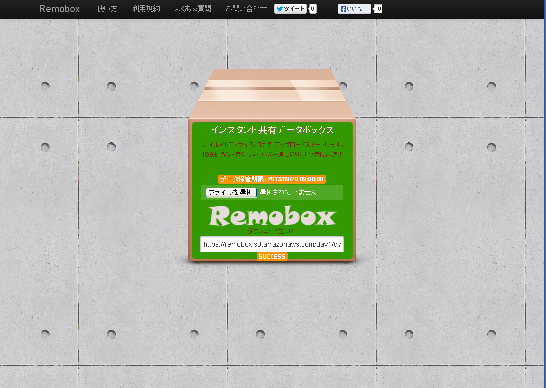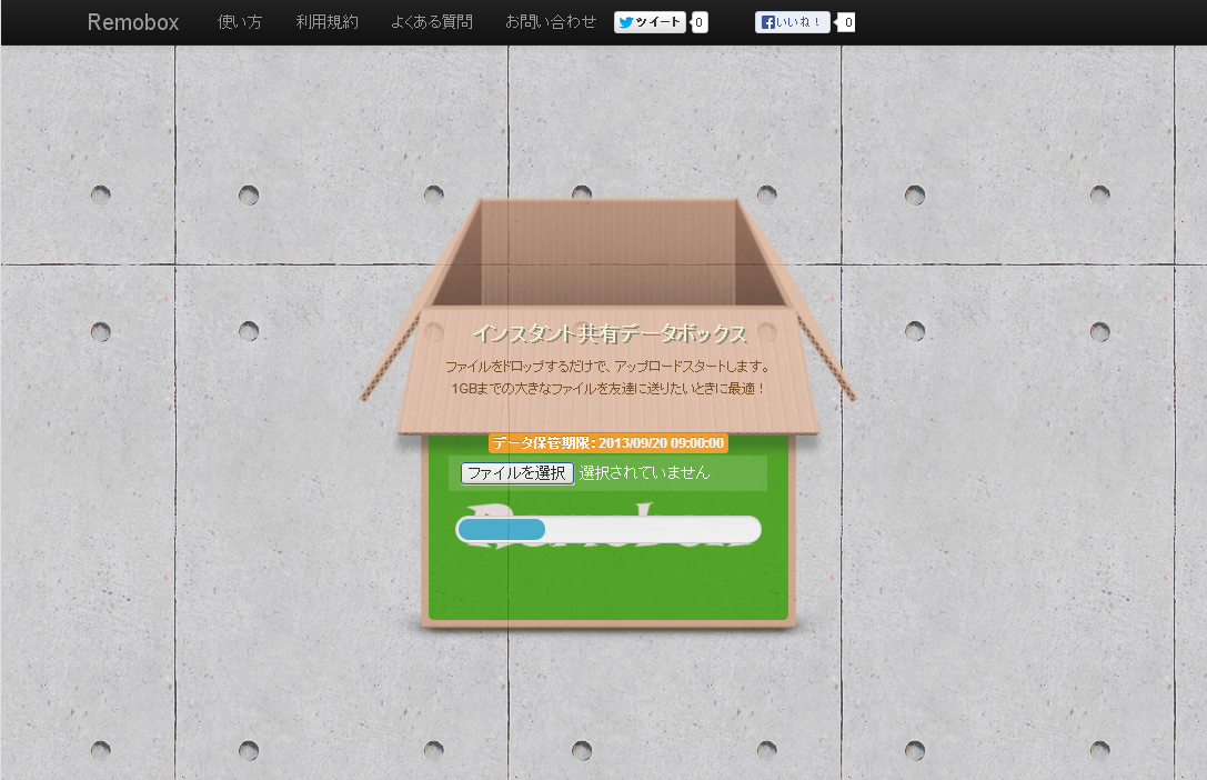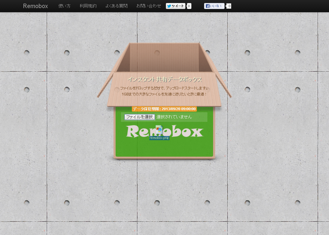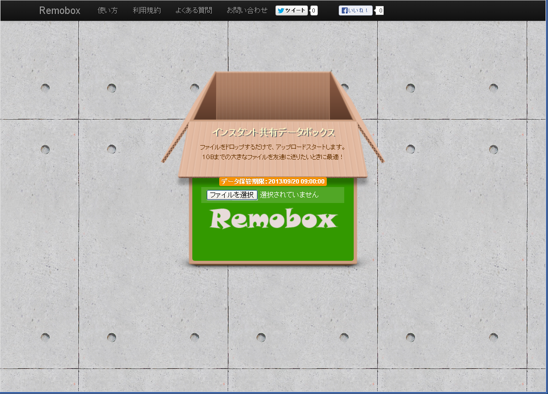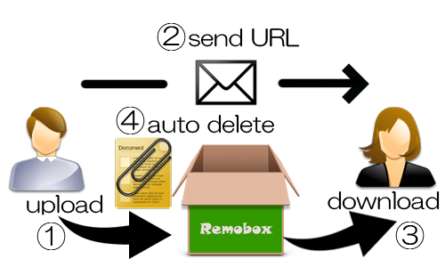 インスタント共有データボックスRemoboxは、短時間のデータ共有に最適なオンラインストレージサービスです。ユーザ登録なしに無料で簡単に大きなファイルをデータ共有することができます。メールの添付ファイルの最大容量を超えるファイル送付に適しています。