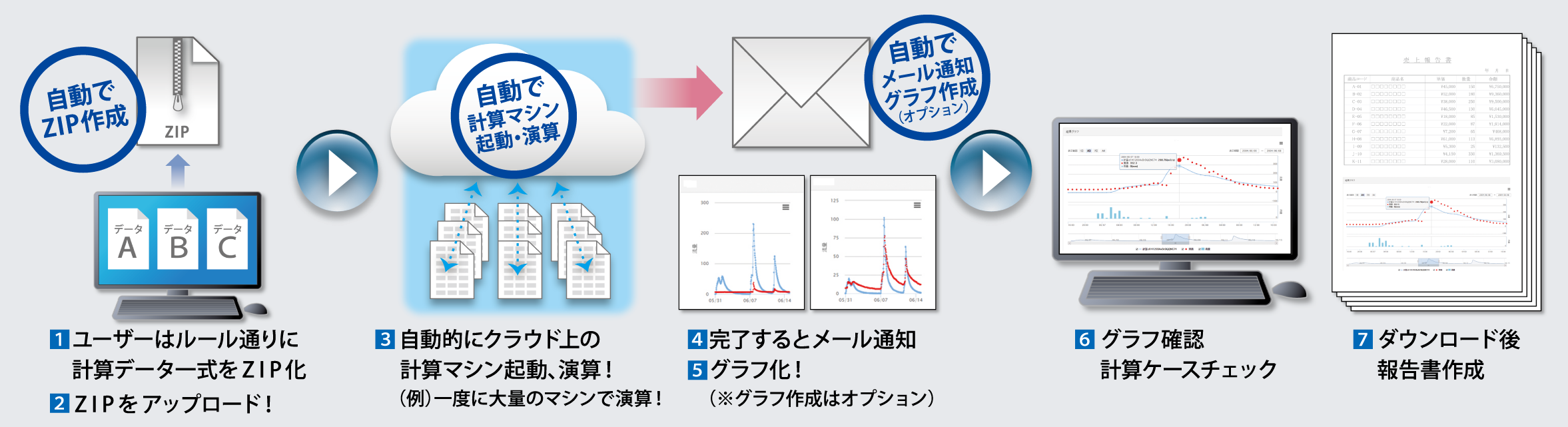 CalcCheckerは、とても簡単にクラウド上の大量マシンリソースを使って数値計算を実施し、計算結果を可視化してチェックできるサービスです。