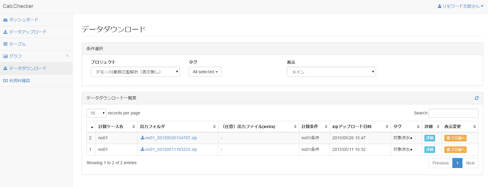 ダウンロードページで、必要なケース分の計算結果データをダウンロードします。